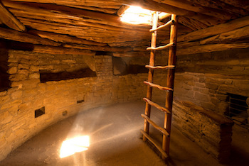 Elke Anasazi familie had daar zijn eigen kiva, en in deze ronde, van leem opgebouwde ruimtes hielden zij hun ceremoniën. Het waren vernuftige bouwwerken. Die bereikbaar waren via een gat in het plafond. Dit gat diende dus als ingang en tevens als ventilatie ruimte en rookkanaal.